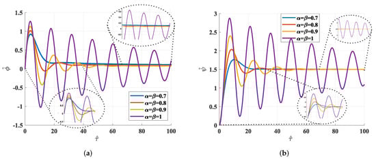 Thereby, the fractional derivatives of the variables and are obtained from (18), respectively, as shown,