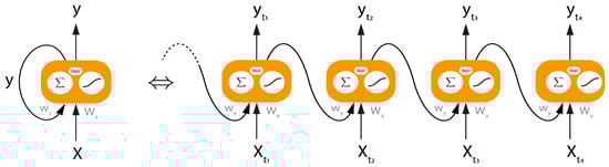 Unfolding of an RNN over 4 time steps (adapted from Ref. [9]).