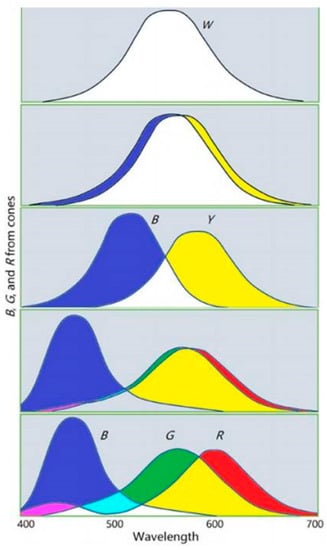 The Young–Helmholtz trichromatic theory [2] affirms that human visual cones receive three primary color signals (red, green, and blue), which the human brain converts into many mental colors. This theory is particularly applicable to computer graphics. Physical and mental colors are completely dissimilar since color vision is three-dimensional, and chromatic light is multi-dimensional. Therefore, Helmholtz proposed sensory symbolism or the semiotic theory of sensation [13].