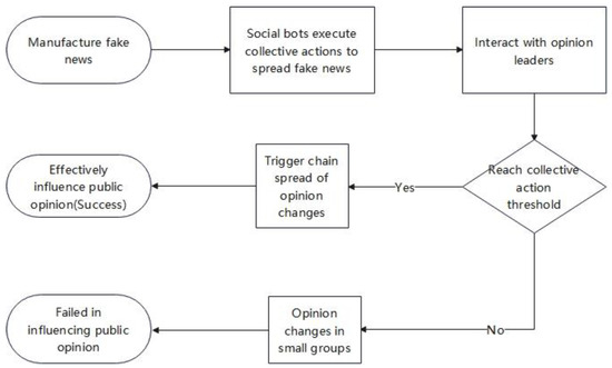 When the collective action threshold is reached, “calculated propagandists” are more likely to reach the collective action threshold by spreading false news than by spreading accurate information. Therefore, propagandists may use artificial intelligence, such as social bots, to disseminate many carefully crafted fake news stories at this stage.