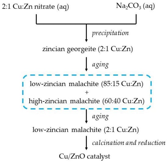 - Smith, P.J.; Kondrat, S.A.; Chater, P.A.; Yeo, B.R.; Shaw, G.M.; Lu, L.; Bartley, J.K.; Taylor, S.H.; Spencer, M.S.; Kiely, C.J. A new class of Cu/ZnO catalysts derived from zincian georgeite precursors prepared by co-precipitation. Chem. Sci. 2017, 8, 2436–2447. [Google Scholar] [CrossRef] [PubMed]