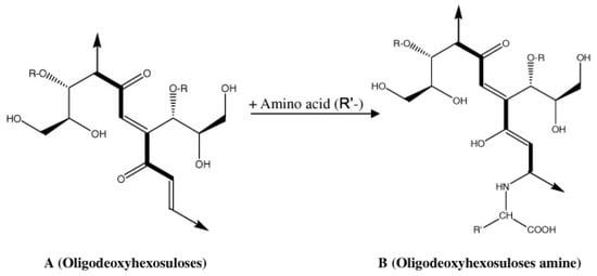 Proposed carbohydrate–based melanoidin structure R: H, Glc, (Glc)n [25].