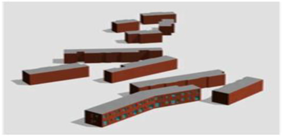 After having written these data into the modeller interface of Pleiades, it was now time to draw our neighbourhood in three dimensions. For this, we relied on the plans and additional documents provided by the project architect. The modelling of the neighbourhood used in this study is shown in Figure 2.