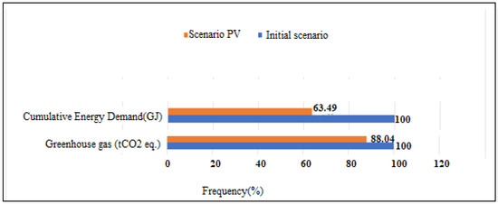 Comparative diagram of the environmental impacts of the “initial” and “Photovoltaic” scenarios (functional unit: entire district).