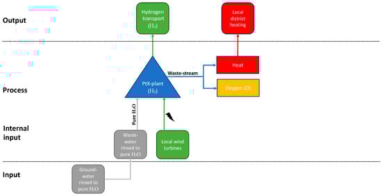 The contribution of this work is hence its emphasis on which types of waste streams exist and how to optimize the valorization of the waste streams connected to PtX production. This was approached by identifying symbiotic “markets” or “use potentials” for these outputs within or in proximity to the PtX plant in the community, region, or nationally. Options for stabilizing and utilizing the current energy system (electricity, district heating, and gas systems) were assessed with the consideration that they should provide synergies with already adopted technology/systems. This will be proposed from the point of departure of an exploratory case study approach by revealing the state-of-the-art deployment of PtX technology in Denmark, with a particular emphasis on waste stream valorization.