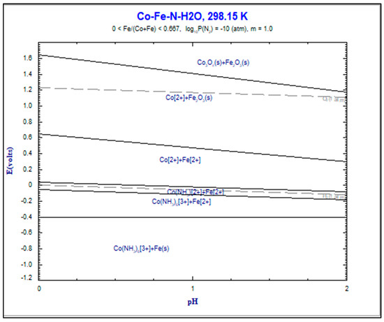 E-pH Diagram in system Co-Fe-N-H2O at room temperature.