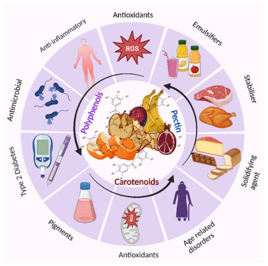 - Lau, K.Q.; Sabran, M.R.; Shafie, S.R. Utilization of Vegetable and Fruit By-products as Functional Ingredient and Food. Front. Nutr. 2021, 8, 661693. [Google Scholar] [CrossRef] [PubMed]