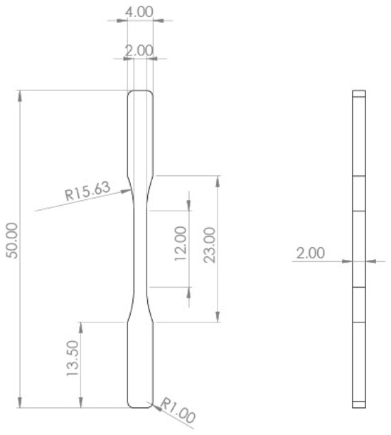 Tensile sample dimensions according to ISO 527-2 [31].