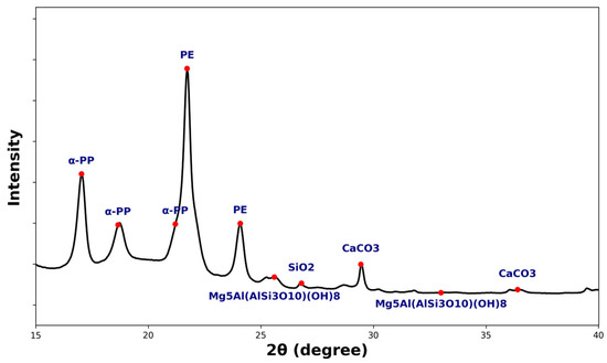 Polypropylene has three crystal structures including the α-phase, the β-phase, and the γ-phase. The α-phase is the most stable and common structure [68]. In a crystallography diagram, the α-phase appears as five distinct peaks observed at 2θ angles of 14.2°, 17.1°, 18.88°, 21.2°, and 21.94° [69].