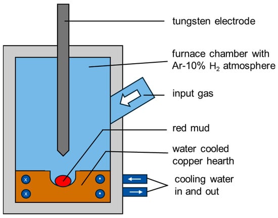 Sketch of the Electric Arc Furnace used for plasma hydrogen reduction of BR.