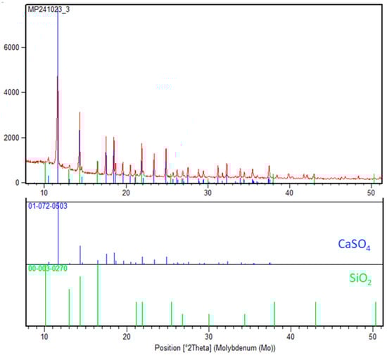 The absence of significant peaks for other crystalline phases indicates that most of the other elements (e.g., Fe, Ti, Al) were effectively dissolved during leaching or are present in an amorphous phase that does not produce prominent XRD signals. The crystalline nature of CaSO4 and SiO2 highlights their stability under the leaching conditions, with CaSO4 likely precipitating as a result of sulfate reactions and SiO2 being inert to sulfuric acid at the given parameters.