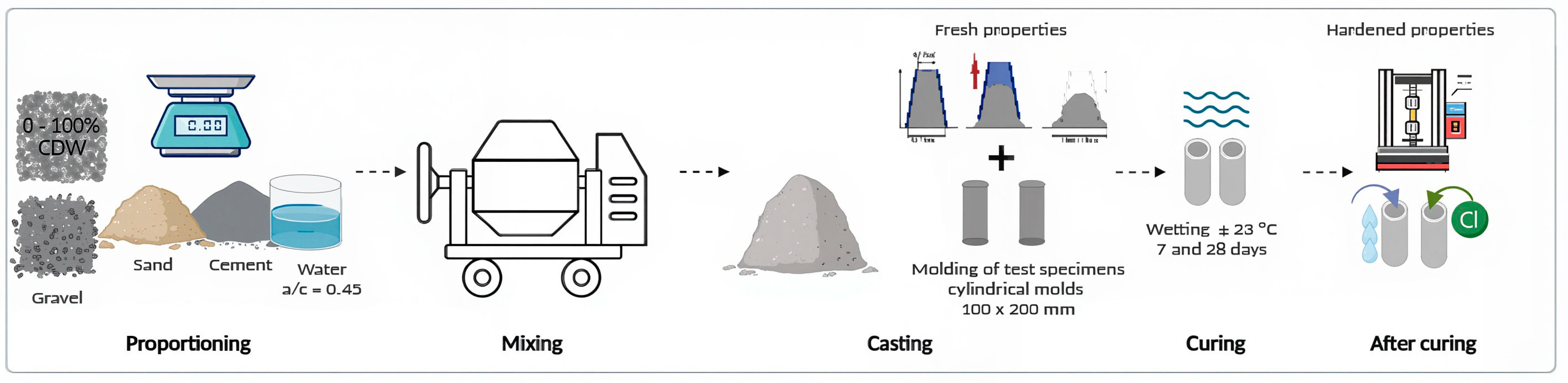 - ABNT NBR: 5738; Concrete—Procedure for Molding and Curing Concrete Test Specimens. Brazilian Association of Technical Standards (ABNT): São Paulo, Brazil, 2015.