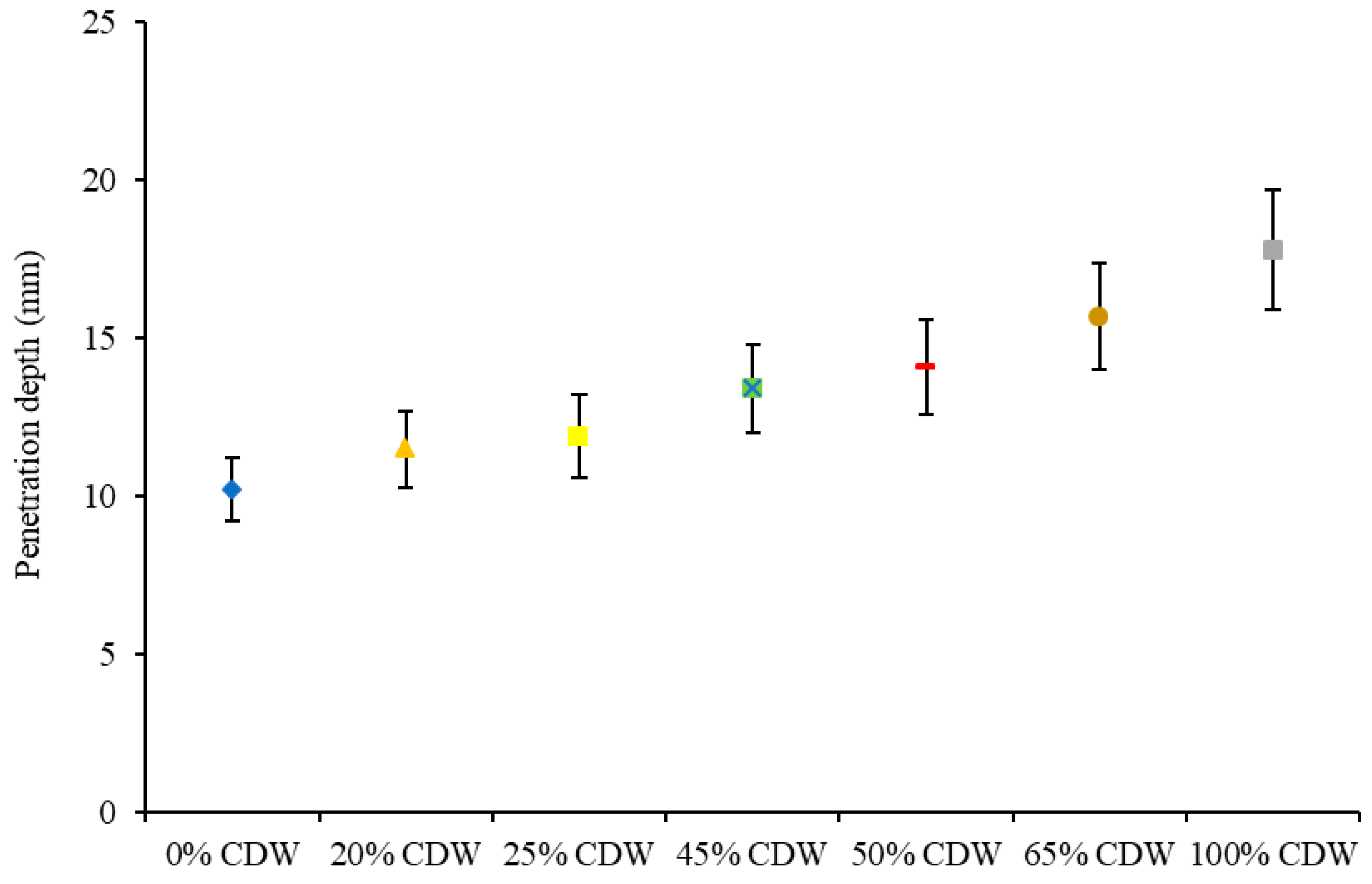 25% CDW | 105 | ±5 | Good cohesion, little exudation |