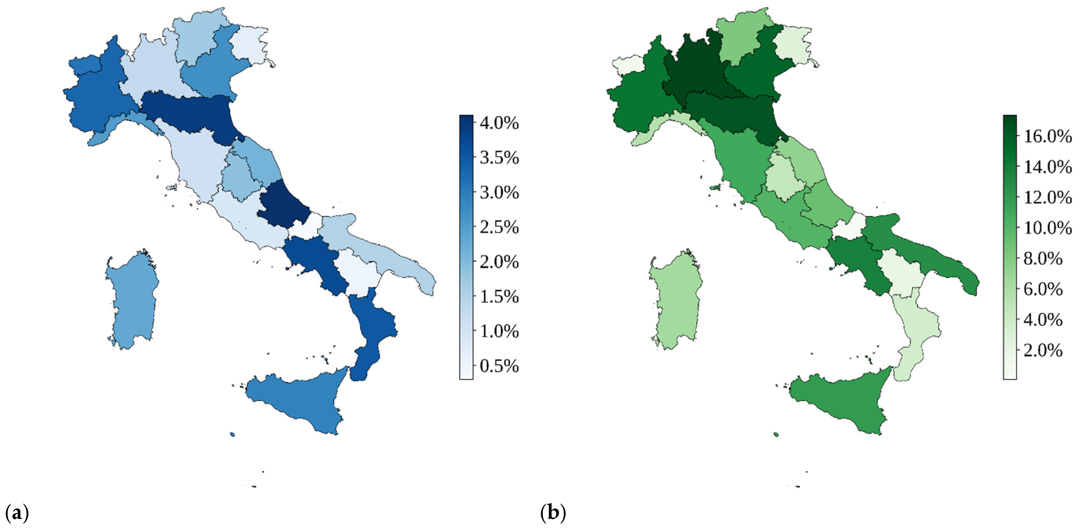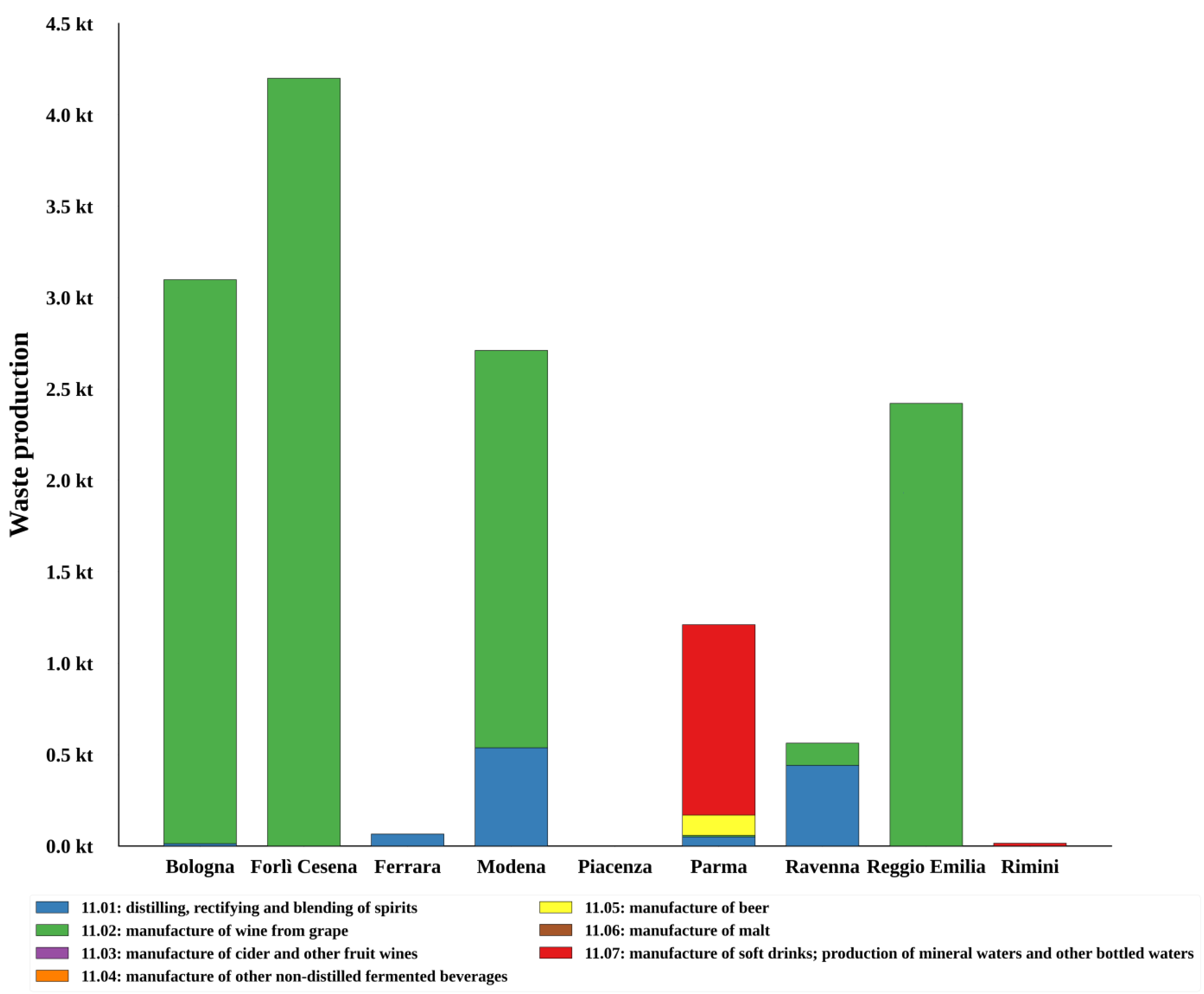 3.2. Food and Beverage Waste Production in Emilia-Romagna