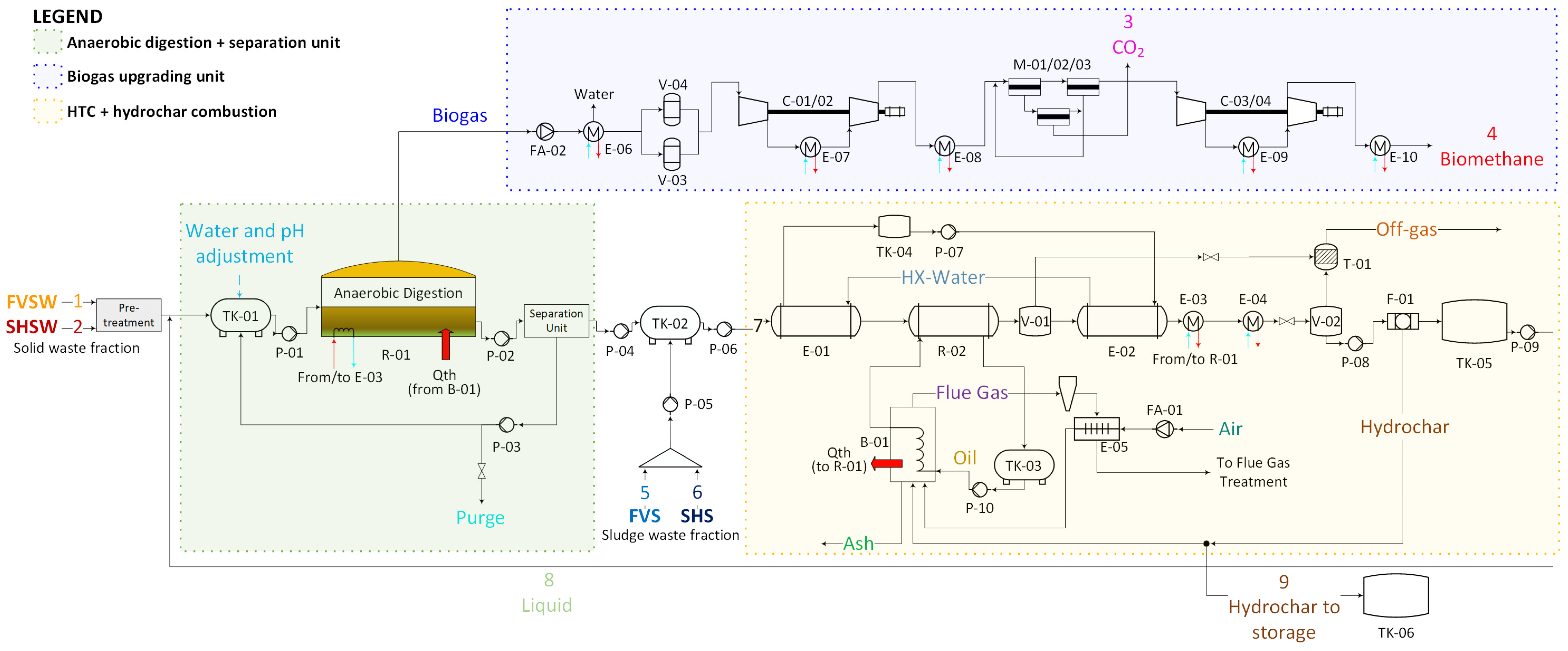 4.2. Conceptual Design of Integrated Waste-to-Value Process