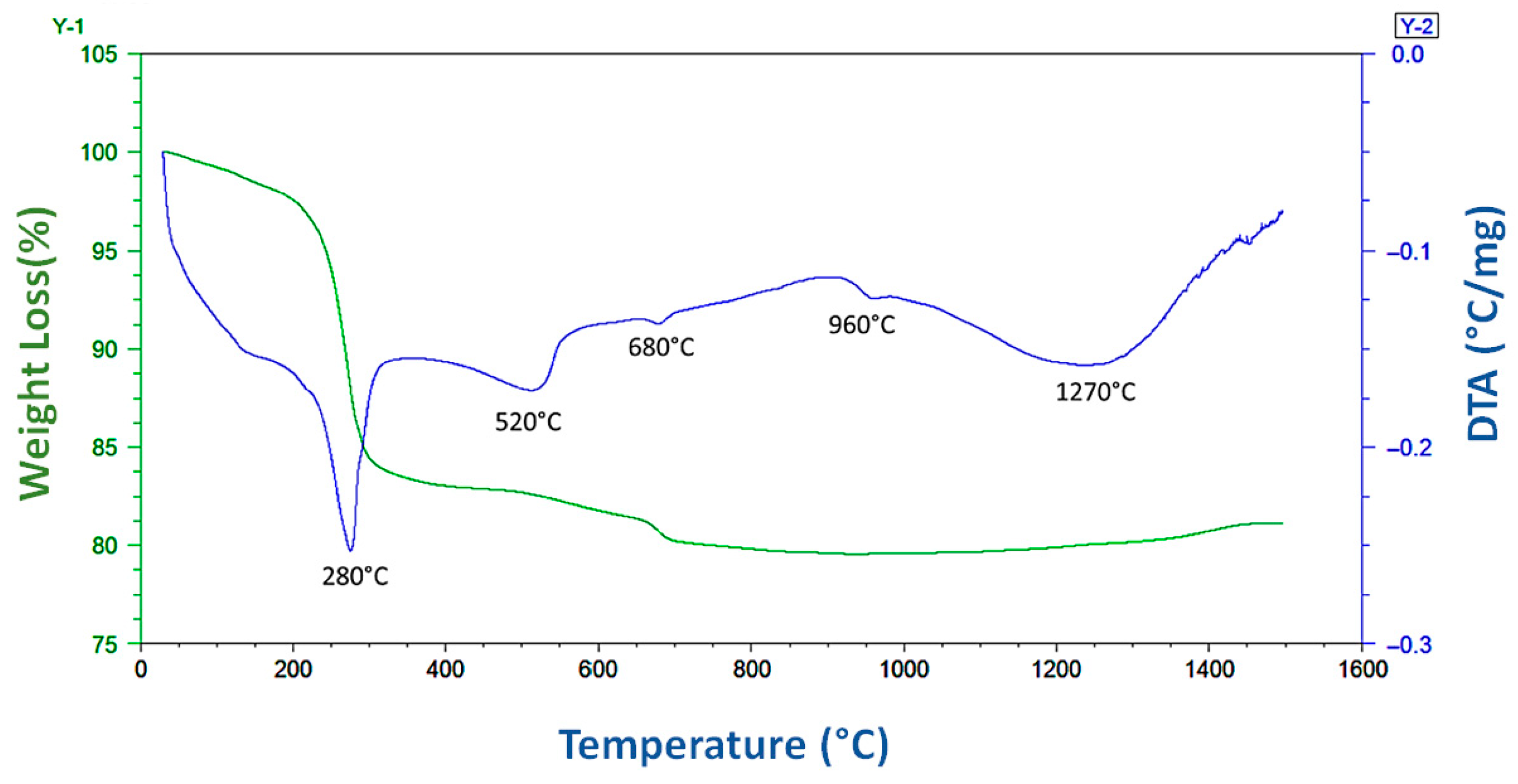3.3.1. Thermal Analysis (TGA–SDTA) of Secar 80 and Kyanite