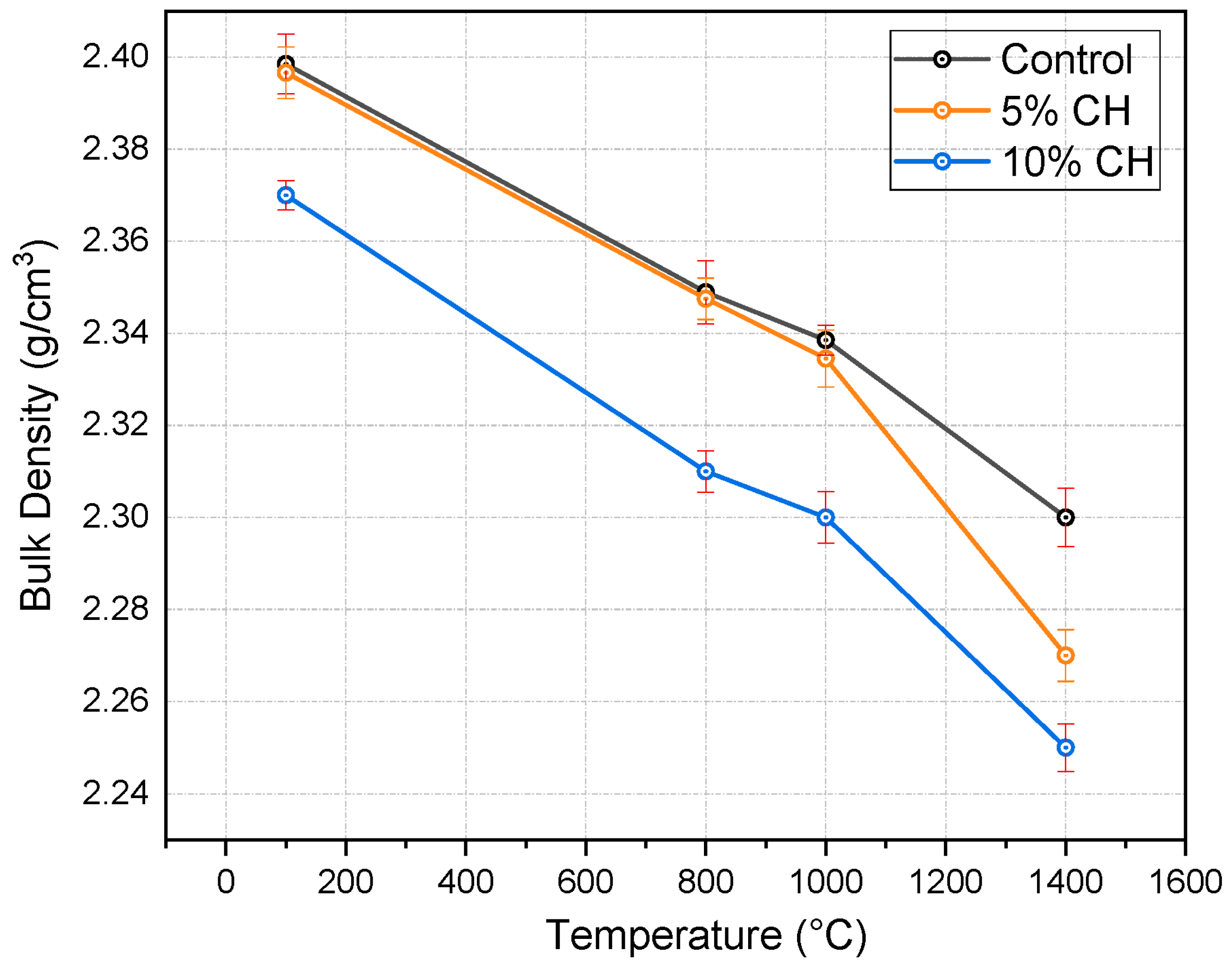 3.5. Physical Properties of Refractory Specimens