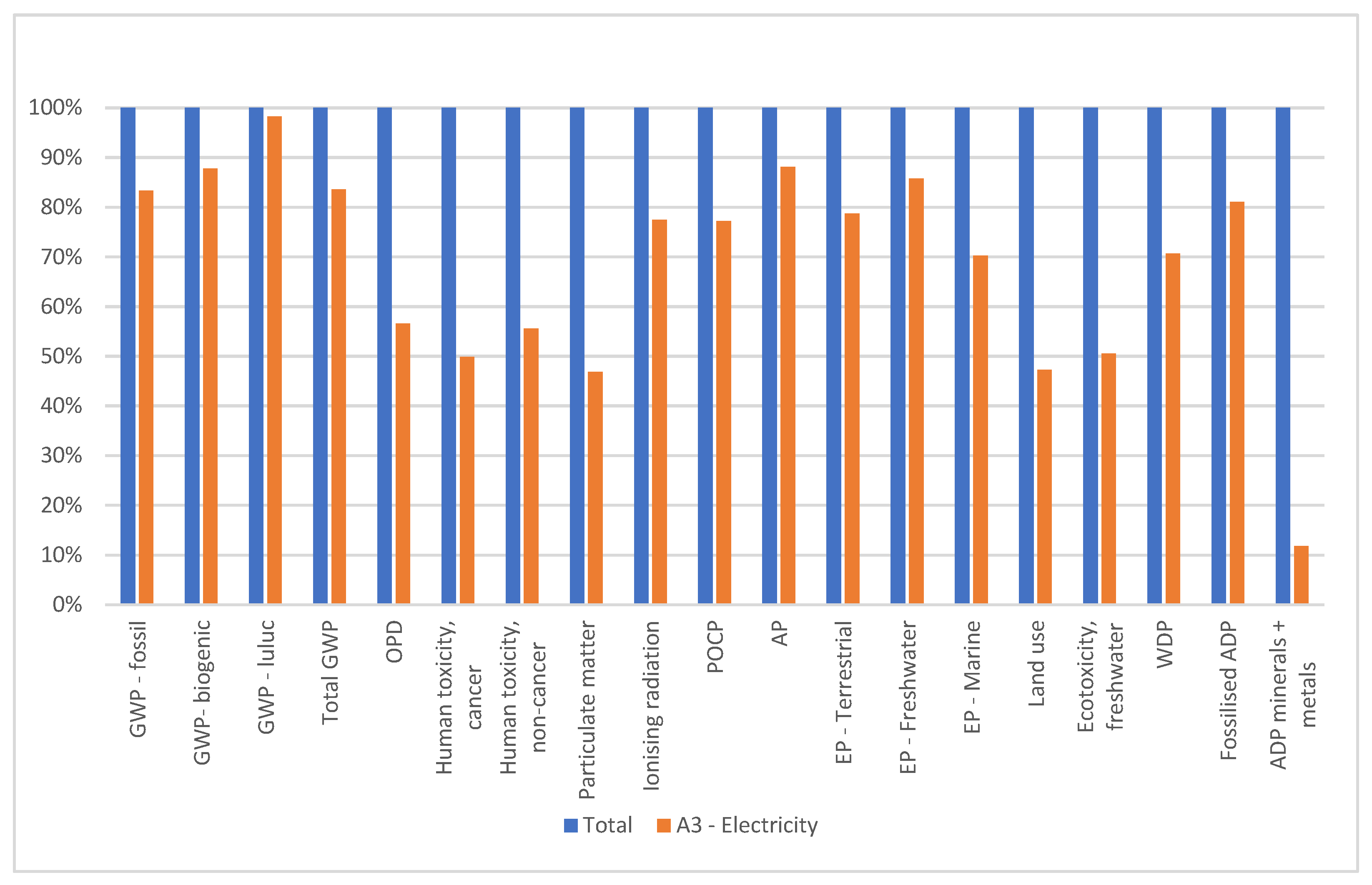 Figure 2 and reveal that electricity consumption is responsible for most of the impacts on the indicators assessed.