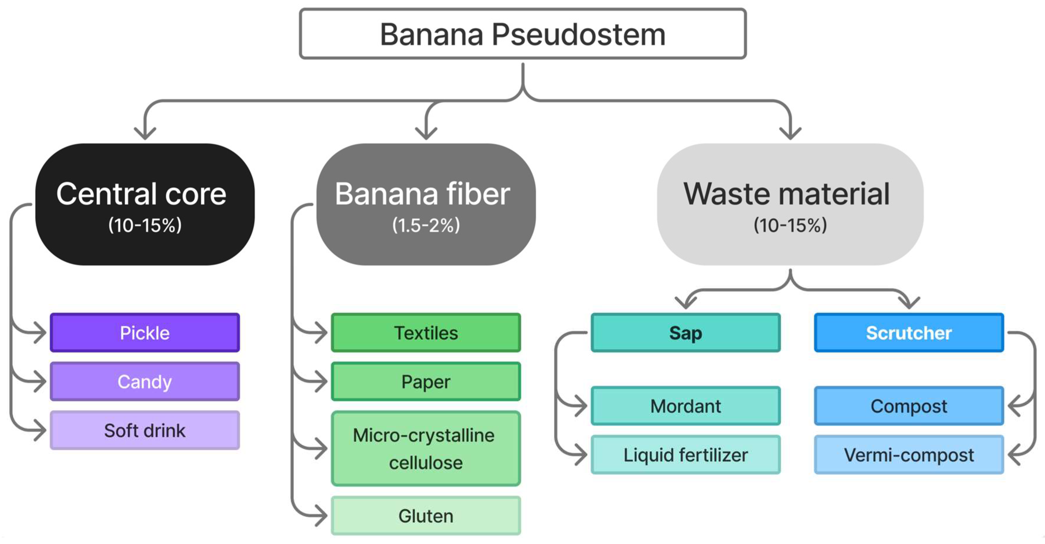 - Vinay, G.M.; Modi, R.B.; Prakasha, R. Banana Pseudostem: An Innovative and Sustainable Packaging Material: A Review. J. Packag. Technol. Res. 2024, 8, 95–107. [Google Scholar] [CrossRef]