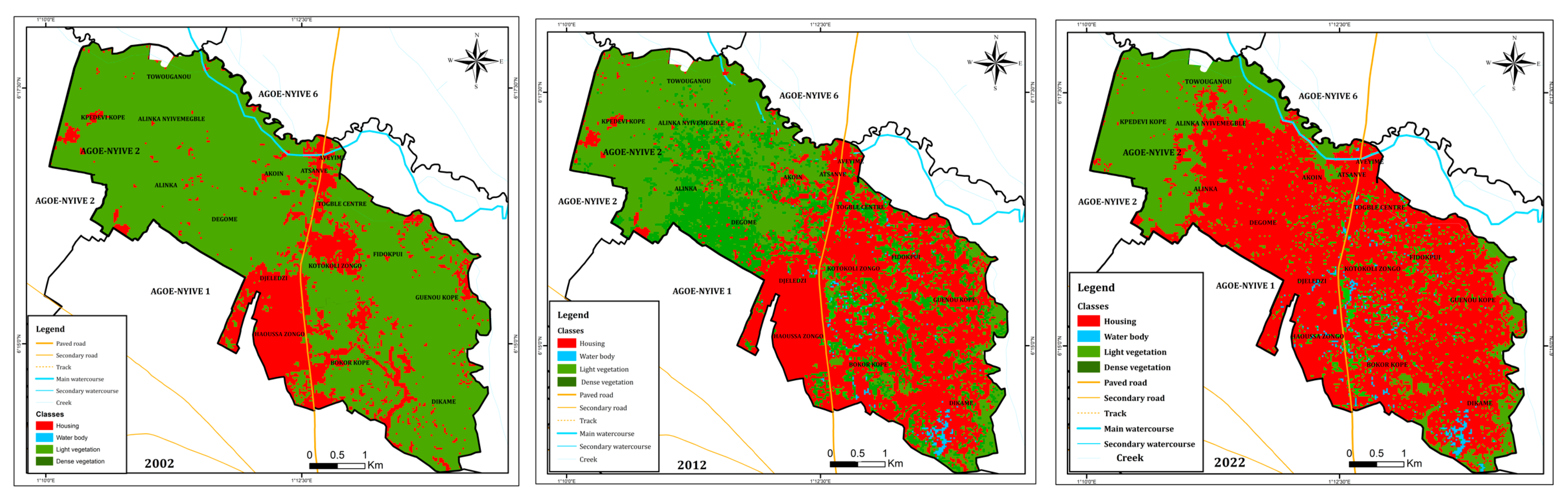 - Blakime, T.-H.; Komi, K.; Adjonou, K.; Hlovor, A.K.D.; Gbafa, K.S.; Oyedele, P.B.; Polorigni, B.; Kokou, K. Derivation of a GIS-Based Flood Hazard Map in Peri-Urban Areas of Greater Lomé, Togo (West Africa). Urban Sci. 2024, 8, 96. [Google Scholar] [CrossRef]
