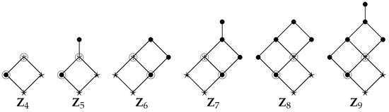 Steps. Let . Then, algebra can be obtained via the expansion of algebra . Two newly added elements, and (see Figure 2), are and . Let us recall that during expansion, the bottom element becomes a generator of the expanded algebra, that is, , and by Proposition 9 and the induction assumption, the statement holds true. □