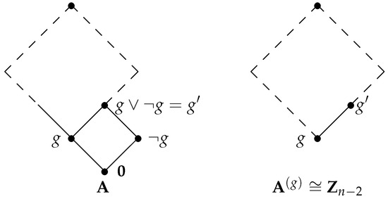 Steps. As , is generated by an ordinary element g. Then, from Proposition 1(a) and (b), the bottom part of the Hasse diagram is as shown in Figure 4.