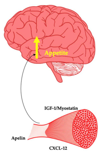 Apelin is produced by skeletal muscle and appears to act in an orexigenic manner on the brain. As a result, there is a need to elucidate what specific active forms are increased or decreased in response to exercise. In addition, it is of interest to examine the effect of muscle loss as a result of intentional weight loss on apelin expression and on the production of specific active forms. Non-responders to exercise from a weight loss perspective may produce more apelin than responders. Furthermore, apelin may signal muscle loss and act directly on the brain to drive hunger and facilitate muscle regain. Apelin also reduces energy expenditure when centrally administered. Thus, this peptide may provide important insights into obesity pathogenesis [167].