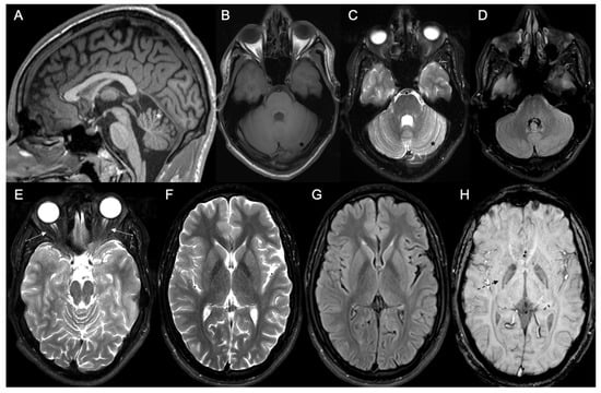 - Pedroso, J.L.; Vale, T.C.; França Junior, M.C.; Kauffman, M.A.; Teive, H.; Barsottini, O.G.P.; Munhoz, R.P. A diagnostic approach to Spastic ataxia syndromes. Cerebellum 2022, 21, 1073–1084. [Google Scholar] [CrossRef]