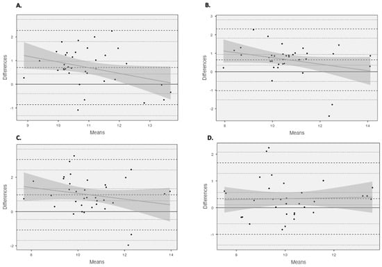 - Bland, J.M.; Altman, D. Statistical methods for assessing agreement between two methods of clinical measurement. Lancet 1986, 327, 307–310. [Google Scholar] [CrossRef]