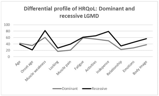 Differential profile of HRQoL: dominant and recessive LGMD.