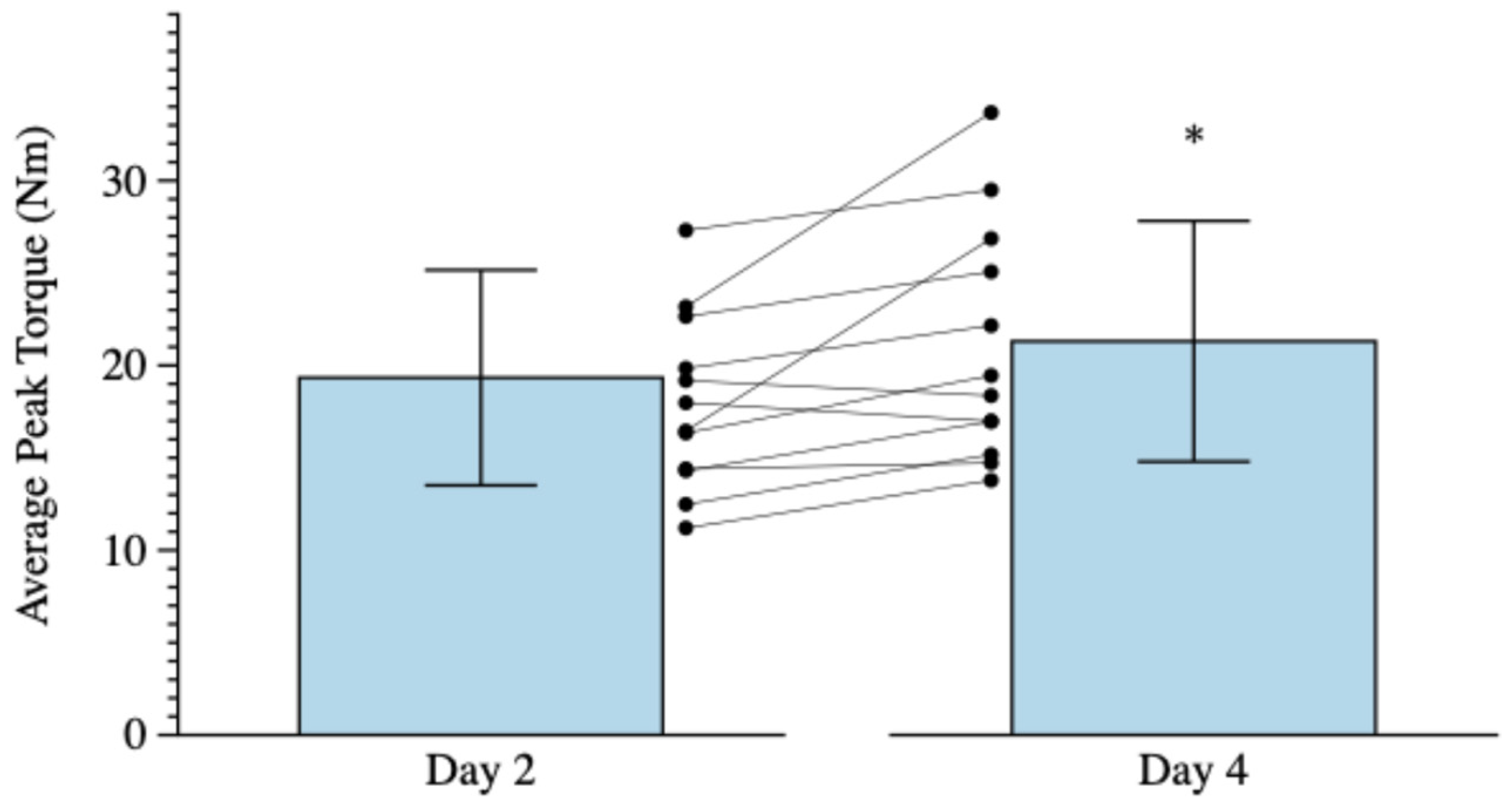 | 180° s−1 | APT (Nm) | 13.4 ± 4.0 | 14.6 ± 3.9 | 0.042 | 0.928 | 0.690–0.980 | 1.6 | 4.4 |