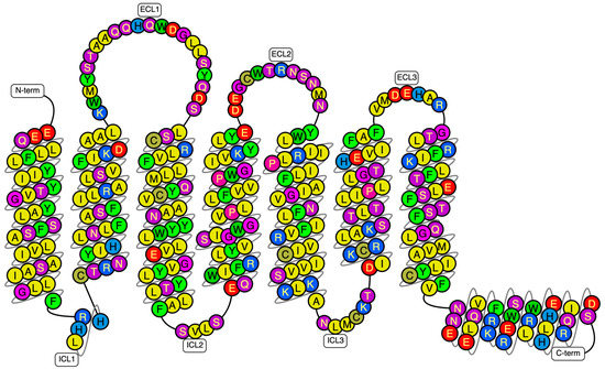 1]. This receptor belongs to the small family (or class) B of G-protein-coupled receptors (GPCRs), which consist structurally of seven transmembrane (TM) domains of 310–420 residues, interconnected by three intracellular (IL) and extracellular (EL) loops, and an extracellular N-terminal domain (NTD) of 120–160 residues (