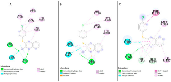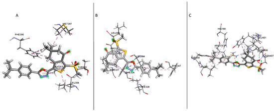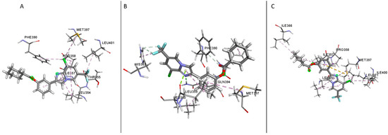 Figure 7C). The amino acid residue Phe390 interacted with compound