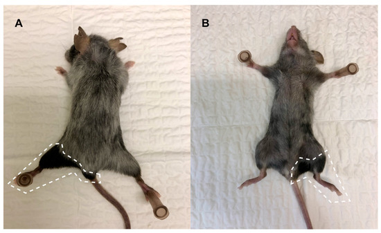- The Jackson Laboratory. Body Weight Information for C57BL/6J. 2023. Available online: https://www.jax.org/jax-mice-and-services/strain-data-sheet-pages/body-weight-chart-000664 (accessed on 4 March 2024).