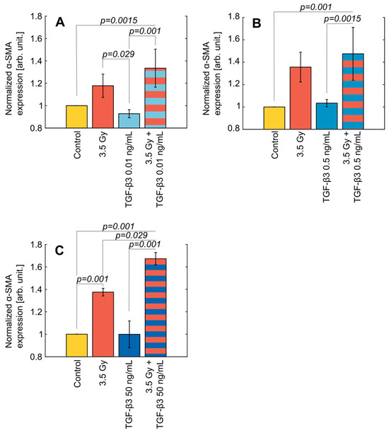 3.4. In Vitro α-SMA Expression after Treatment with TGF-β3 and Radiation
