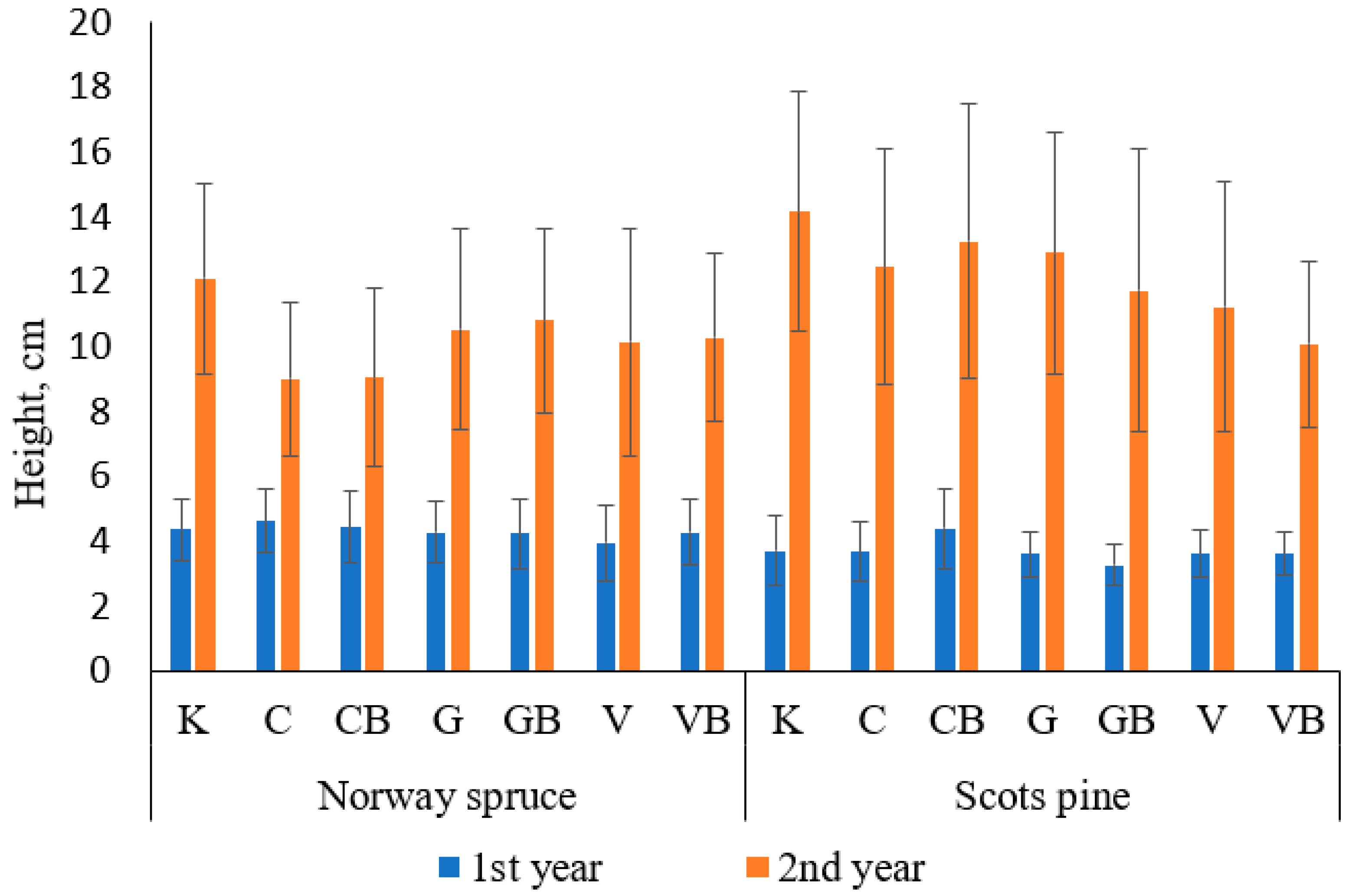 | Scots pine | Control | 82.5 ± 7.5 | 26.7 ± 10.3 |