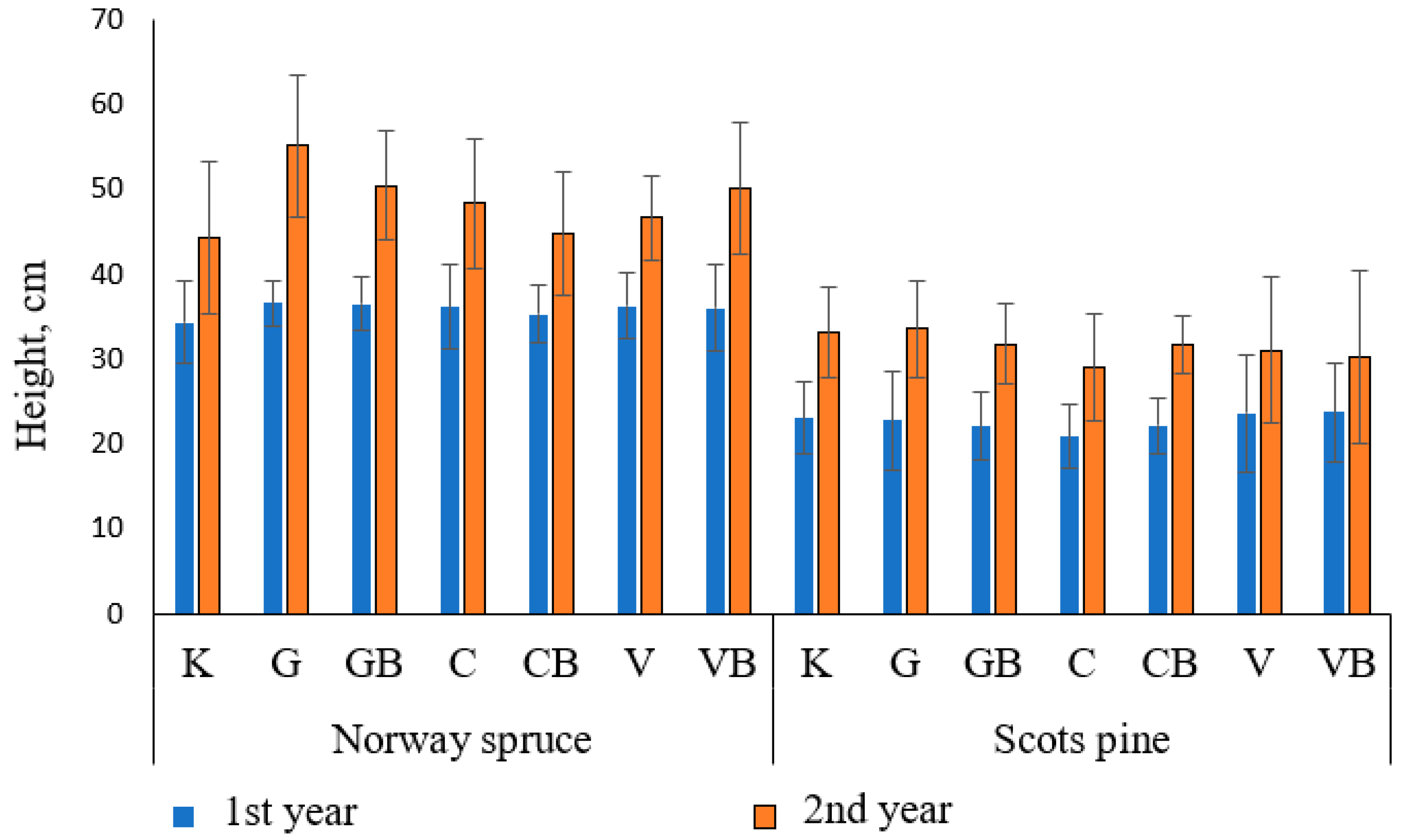 | Norway spruce | Control | 70.0 ± 12.5 | 67.5 ± 9.4 |
