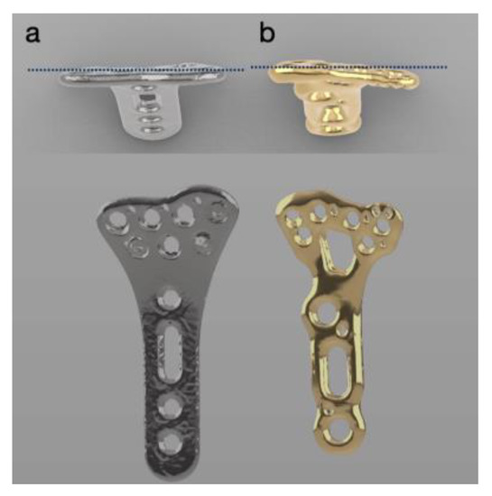 A plate with flat distal portion (a) and a plate bent to match the rim shape (b).