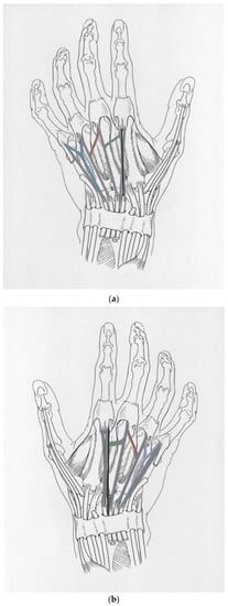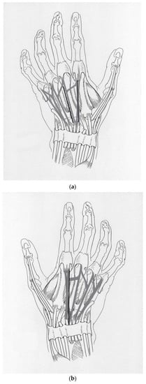 - Fischer, K.; Breitfeld, T.; Damert, H.G.; Rothkotter, H.J. Multiple Variations of Extensor Muscles in a Single Hand. Int. J. Anat. Var. 2016, 9, 32–34, eISSN: 1308-4038. Available online: https://www.pulsus.com/scholarly-articles/multiple-variations-of-extensor-muscles-in-a-single-hand.pdf (accessed on 10 January 2023).