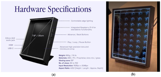 (a) The hardware specification of TLG portrait [25]. (b) An image of TLG portrait in quilt mode showing an X-ray textured model [23].
