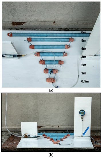 We mimicked a basic rete network to determine what influence the number of turns or spirals in the rostral epidural rete mirabile structure might have on flow tempo. The serial setup of the experimental flow test, even though a limitation to the actual anatomy of the carotid rete, is utilized to represent the influence of the rete structure. A rostral epidural rete mirabile network was mimicked using 4-mm diameter plastic fish tank air pump tubing. The tubing was measured into 0.5 m, 1 m, 2 m, 3 m, 4 m, 5 m and 6-m lengths and then winded around a standard 25-mm diameter plastic pipe to imitate the rostral epidural rete mirabile (Figure 1a,b). Plastic fish piping was fixed against a wall, giving a length of 4750 mm. Water, at room temperature, was used. Connections were constructed in a manner so that water could be opened with a switch and for the water to be pumped through the rostral epidural rete mirabile and upwards to the height of 4750 mm. The water flow was opened for one minute. The amount of water that ran through the system was measured. The change in water level before and after the rete mirabile was measured after the minute (Figure 2A). The experiment was repeated five times for each of the different lengths that simulated the carotid rete.