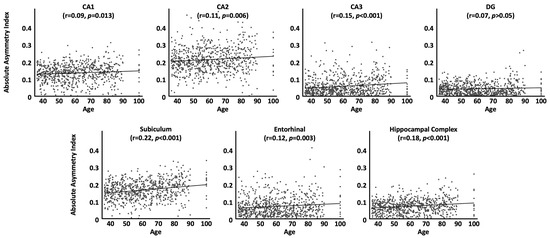 - Kurth, F.; Cherbuin, N.; Luders, E. The impact of aging on subregions of the hippocampal complex in healthy adults. NeuroImage 2017, 163, 296–300. [Google Scholar] [CrossRef] [PubMed]