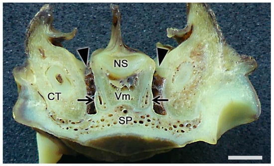 - Salazar, I.; Lombardero, M.; Cifuentes, J.M.; Quinteiro, P.S.; Aleman, N. Morphogenesis and Growth of the Soft Tissue and Cartilage of the Vomeronasal Organ in Pigs. J. Anat. 2003, 202, 503–514. [Google Scholar] [CrossRef]
