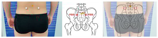Figure 4 shows the marker placements on the anterior superior iliac spine (ASIS) and the posterior superior iliac spine (PSIS). The pelvic tilt is the angle between the line connecting the two markers and the horizontal plane.