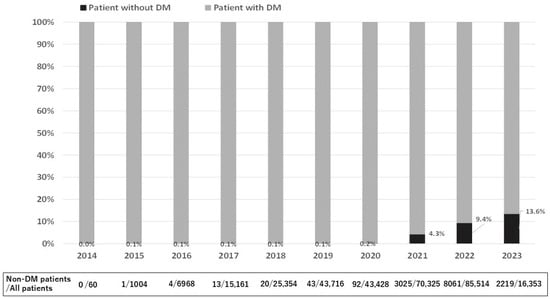 - Ministry of Health, Labour and Welfare. Statistics on Diabetes in Japan, Figure 1-2-8: Status of the Number of Diabetes Patients. Available online: https://www.mhlw.go.jp/stf/wp/hakusyo/kousei/18/backdata/01-01-02-08.html (accessed on 22 November 2024). (In Japanese).