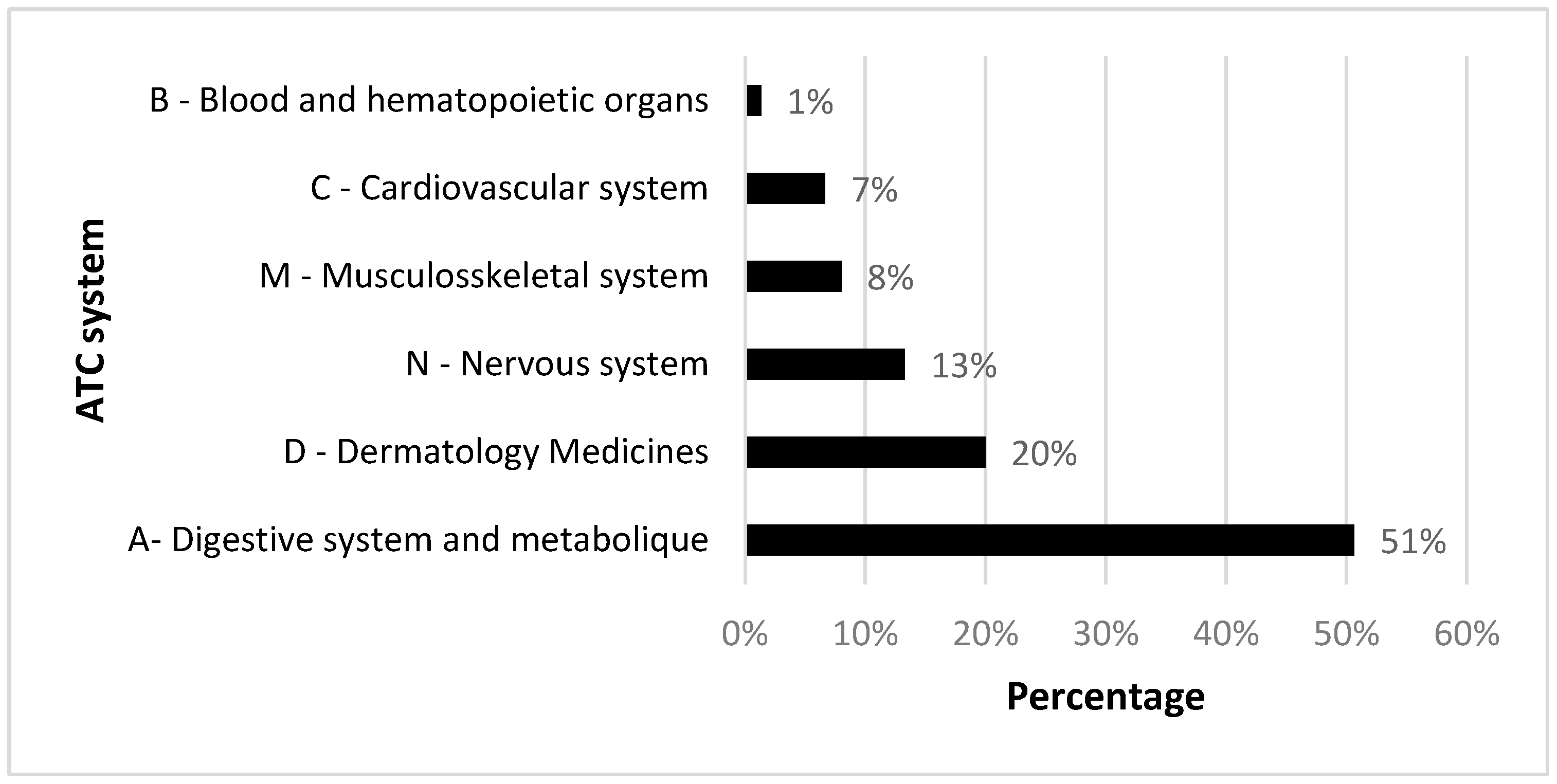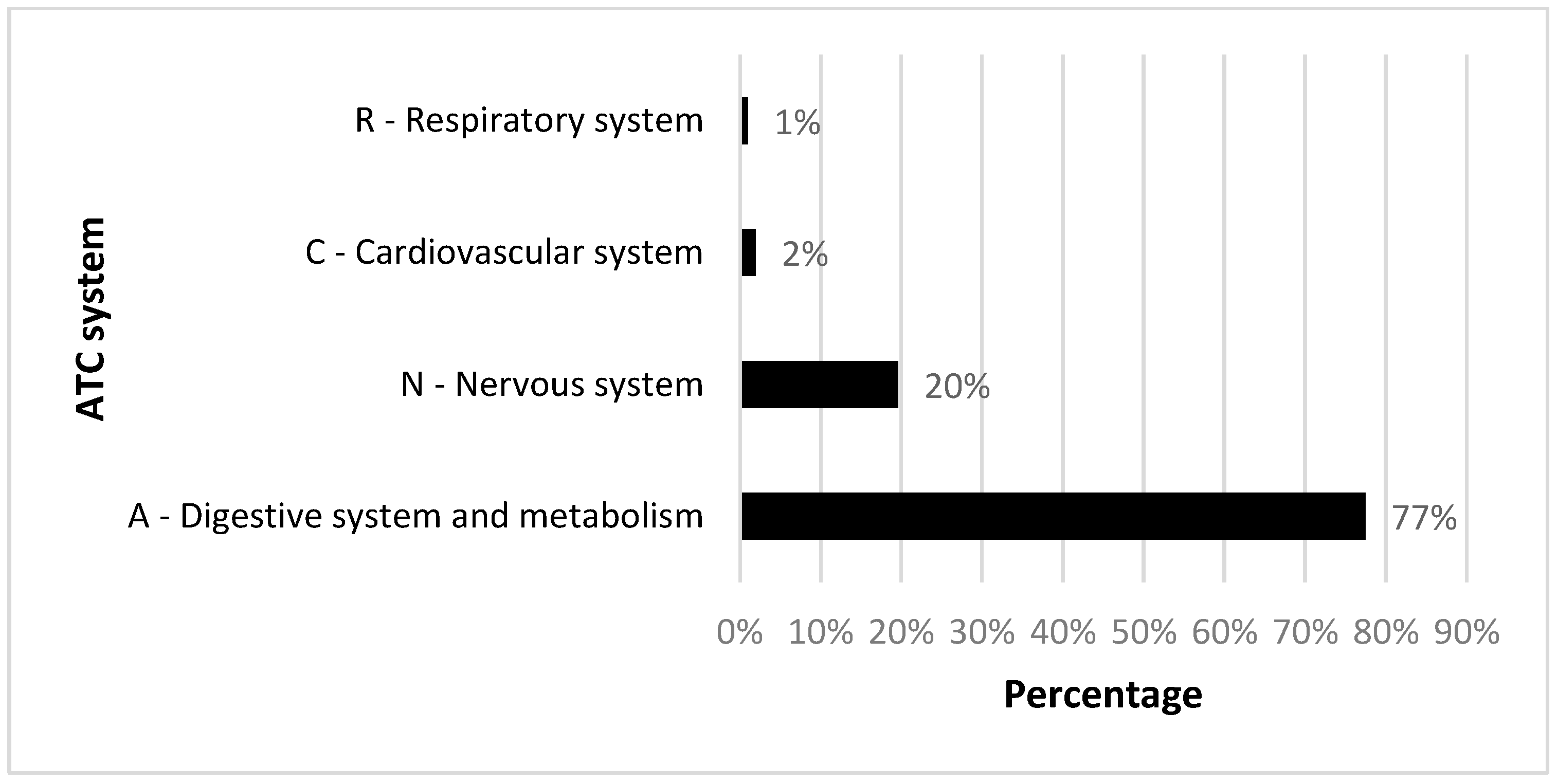 - World Health Organization. Anatomical Therapeutic Chemical (ATC) Classification. Available online: https://www.who.int/tools/atc-ddd-toolkit/atc-classification (accessed on 16 August 2024).