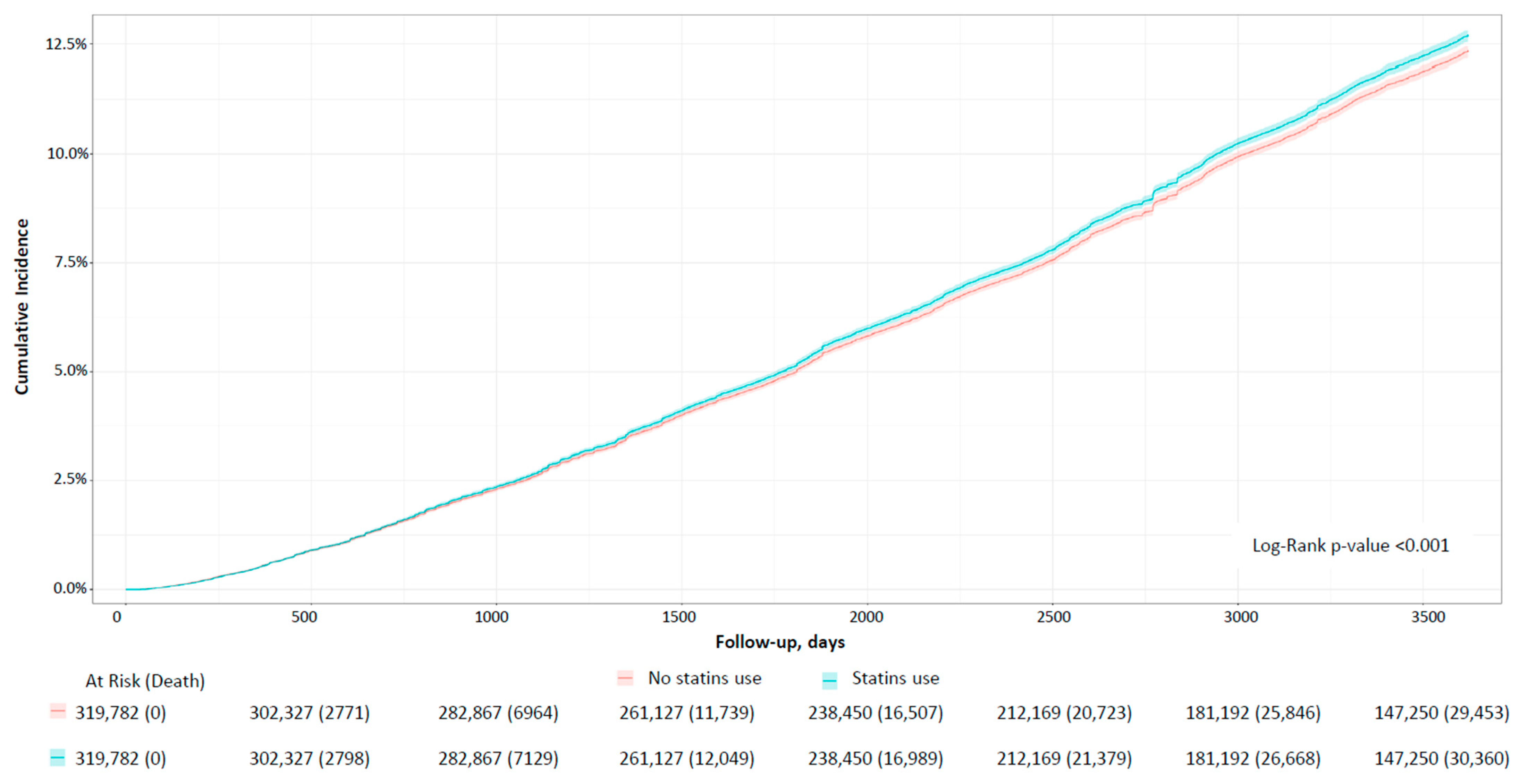 2.2. Outcomes According to Statin Use