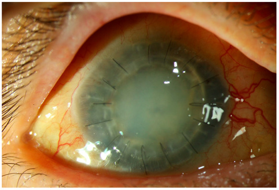 - Christo, C.G.; van Rooij, J.; Geerards, A.J.; Remeijer, L.; Beekhuis, W.H. Suture-related complications following keratoplasty: A 5-year retrospective study. Cornea 2001, 20, 816–819. [Google Scholar] [CrossRef]