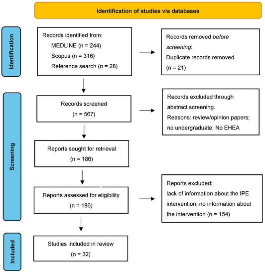Articles were scanned considering the following inclusion criteria: corresponding author and/or location of IPE intervention based in EHEA member country; peer-reviewed articles; written in English; undergraduate medical students included; description (duration and content); and evaluation of IPE intervention.