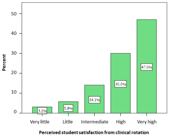 Perceived satisfaction of clinical rotations. Shown is a histogram of the perceived satisfaction of students from clinical rotations.
